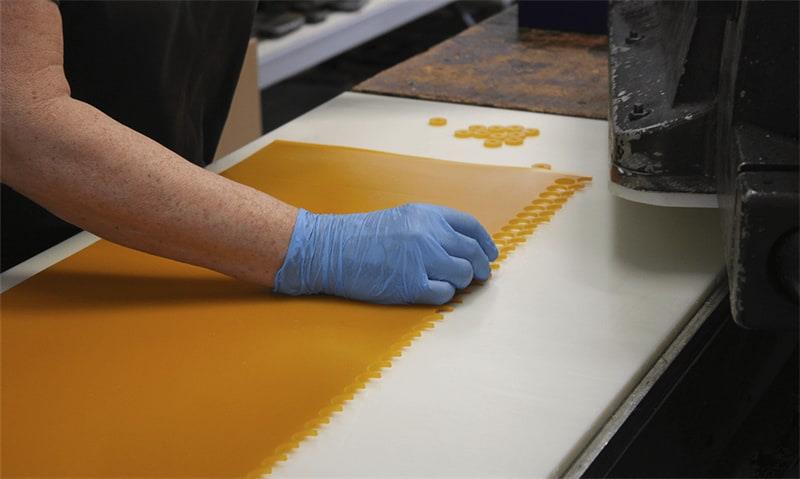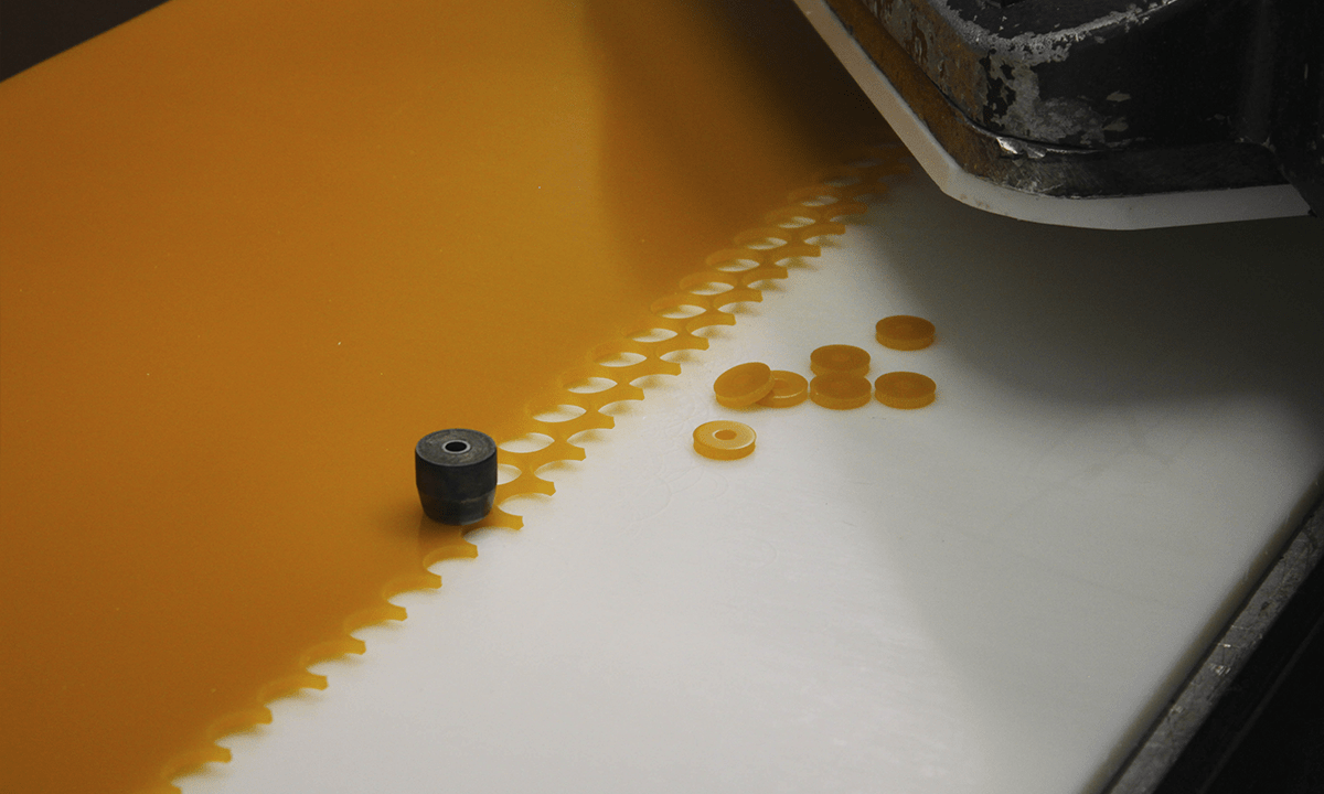 At AAG, we have a wide range of machines that manufacture all kinds of gaskets for every industry. Gaskets come in a variety of designs, materials, and configurations, and no job is too big or too small. For this project, we punched small PUR gaskets in two different sizes using die-cutting tools custom-made to the customer’s specifications.