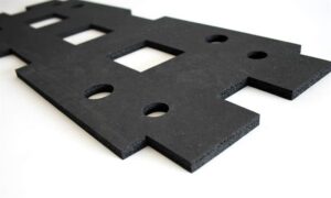 Flat gaskets are available in cellular rubber moos rubber; both materials can be supplied with double-sided adhesive tape. AAG is happy to assist you in drafting and designing your own die-cutting tool, ensuring you receive a unique and precise solution tailored to your needs. For more complex projects, we use water cutting flash cutters.