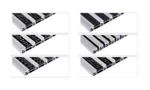 The Tec 22 offers maximum safety and cleanliness. Its closed construction prevents dirt from getting under the profiles or when the mat is lifted. The hinged design provides a smooth surface and ensures the Tec 22’s durability. Damage to a single profile is distributed evenly throughout the structure, making the Tec 22 extremely durable. Ideal for high-traffic and high-load entry areas such as supermarkets, hospitals, hotels, and airports, to name just a few. Tec 22 is slip-resistant and enhances overall safety for people with physical disabilities and wheelchair users, and supports nearly all types of load-bearing vehicles.